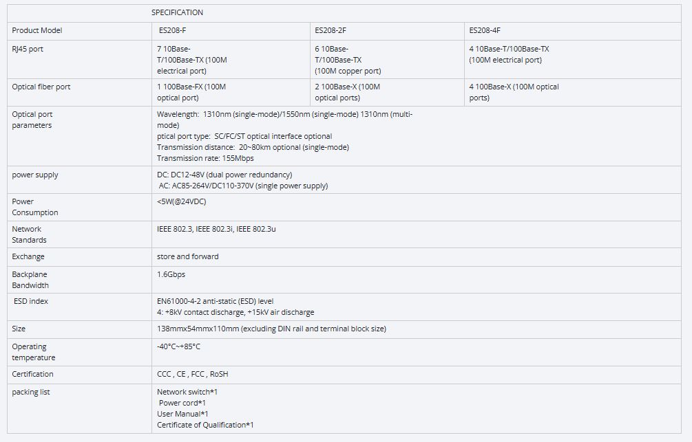 The industrial Ethernet switch adopts high-performance imported switching chip to ensure the stable transmission of large traffic data, and supports 10/100/100M adaptive electrical port; Support -40~85℃ operating temperature, industrial power protection, indicator status display, guide rail/rack installation, fan-less thermal housing design, to achieve real readout, convenient and fast, but also meet the EMC4 level protection, IP40 protection, 6000V lightning protection and other indicators, can adapt to a variety of harsh industrial environment application needs.
